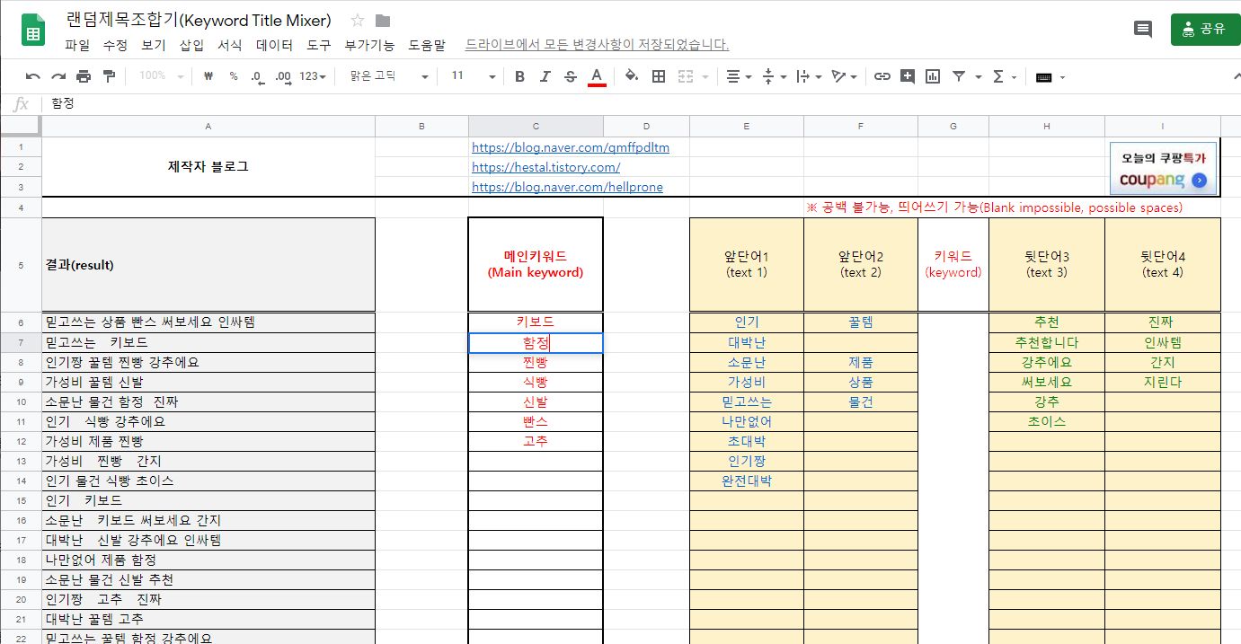 Multiple "main keywords" can also be registered and listed at random.