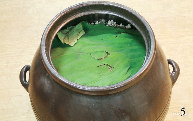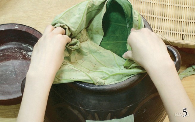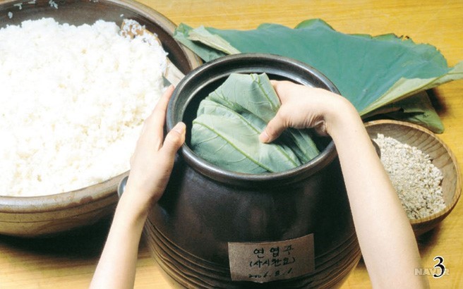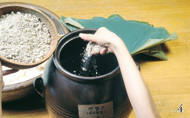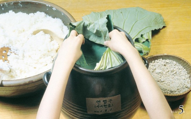 술 항아리를 불길로 말린 뒤 연잎 500g을 넣은 다음