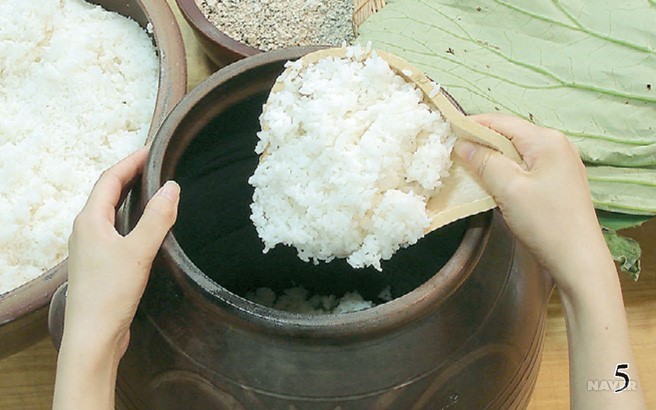 멥쌀 7.2㎏과 찹쌀 1.8㎏을 섞어 술밥을 만들어 식히 뒤