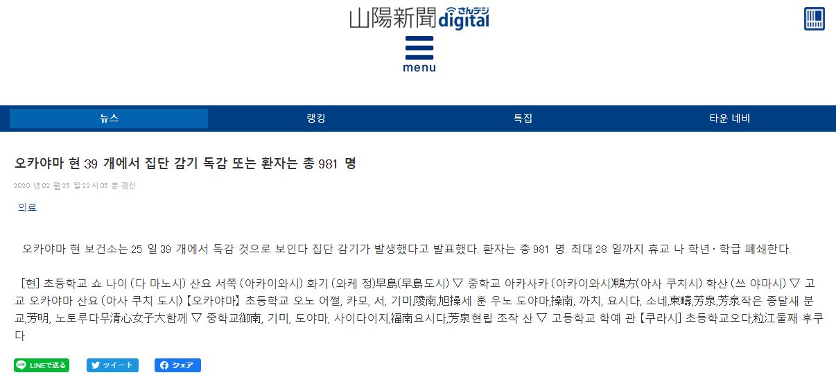 이는 중국 다음으로 가장 많은 수로, 현재 일본 당국은 정확한 감염 경로 파악에 어려움을 겪고 있는 것으로 전해졌다.
