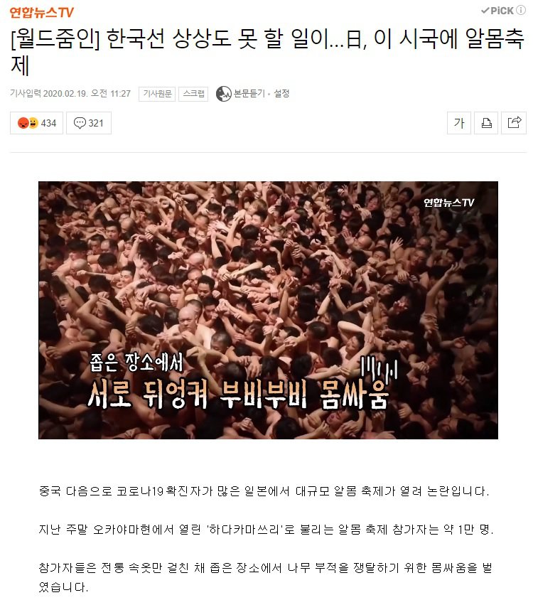 코로나19 확진자수 600명을 돌파한 일본이 지난 15일 알몸 축제를 개최했음.