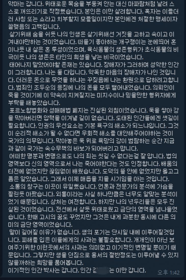 한편 이날 조 씨는 이날 포토라인에서 특정 인물들의 이름을 언급하며 “저에게 피해를 입은 분들께 사죄의 말씀을 드린다. 멈출 수 없었던 악마의 삶을 멈춰 주셔서 감사하다”고 말했네요.