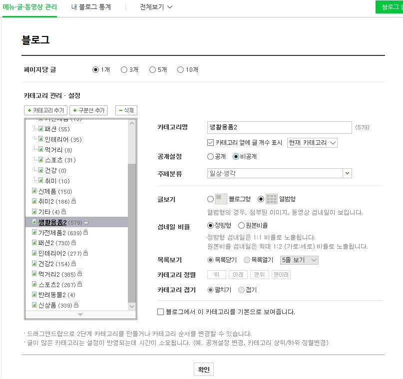 카테고리를 완전 삭제할 수도 있는데 이때는 카테고리 내에 필요한글이 하나도 없으면 사용 할 수 있다.