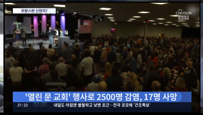 '프랑스판 신천지'라는 지적이 나온 바 있어요. 1966년 피터슈미츠 부부에 의해 창립된 복음주의 교회인 이 단체는 2월 17일부터 21일까지 5일간 특별 행사를 진행했는데, 당시 행사 참여를 위해 프랑스 전역에서 신도 2000여명이 몰려들었으며 이 곳에서 집단감염이 발생했네요고 현지 언론은 전했네요.