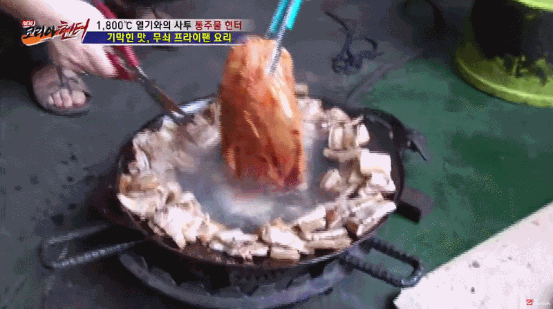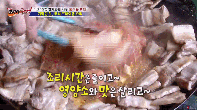 그런데 일반적인 가정에서 후라이팬으론 차가운 식재료가 팬에 닿는 순간 온도가 순식간에 떨어져 식재료를 굽지 않고 삶아지게 만드는 것이다
