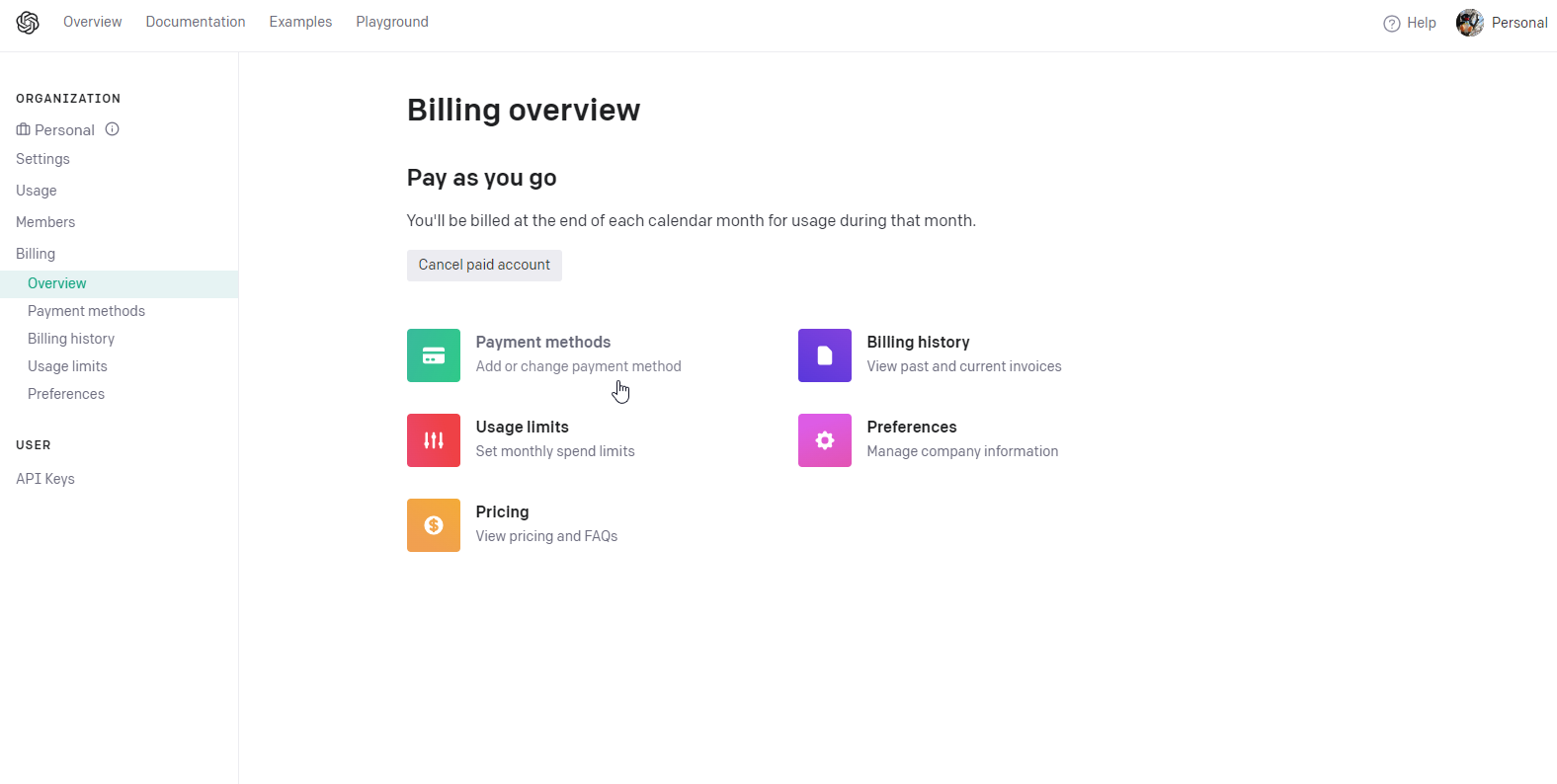 gpt api키는 비용이 청구되는 카드를 입력해야 활성화가 된다. 이 api 이용료는 사용한 만큼 청구되며 gpt 플러스라는 20달라짜리 정기구독 서비스와는 다르게 요금이 책정된다. GPT API 이용료와 GPT