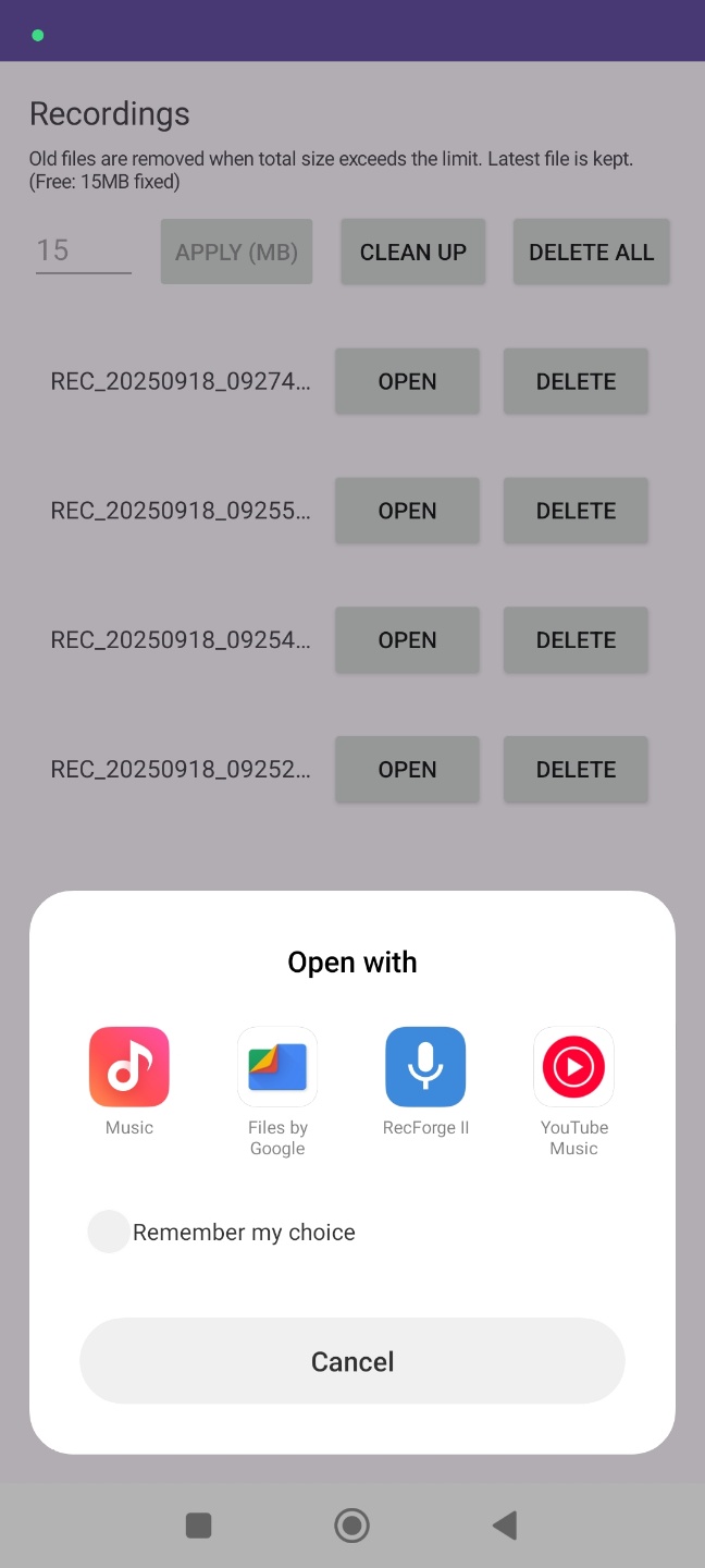 - 📱 In-app playback, sharing, and file deletion — no extra tools needed